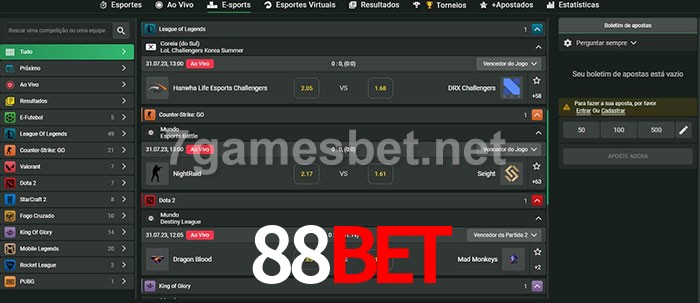O 88bet oferece uma grande seleção de opções de apostas em e-sports com probabilidades competitivas